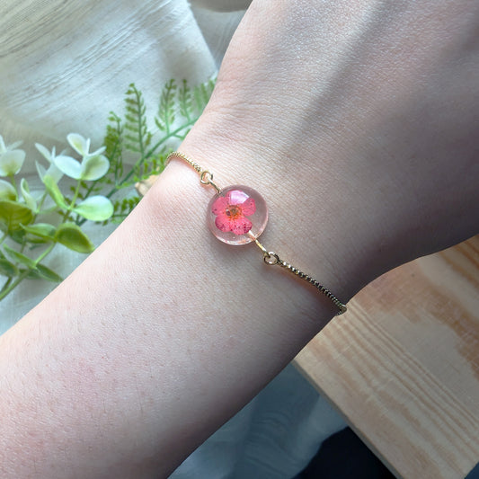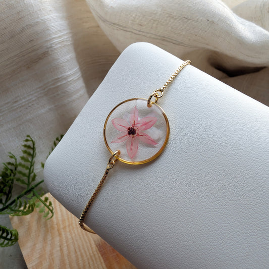 Pink Chive Blossom Bracelet with Seashell Flakes | Gold Plated Real Flower Jewellery