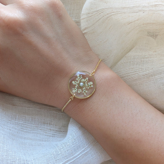 Protection Queen Anne’s Lace Bracelet | Gold Plated Real Flower Jewellery