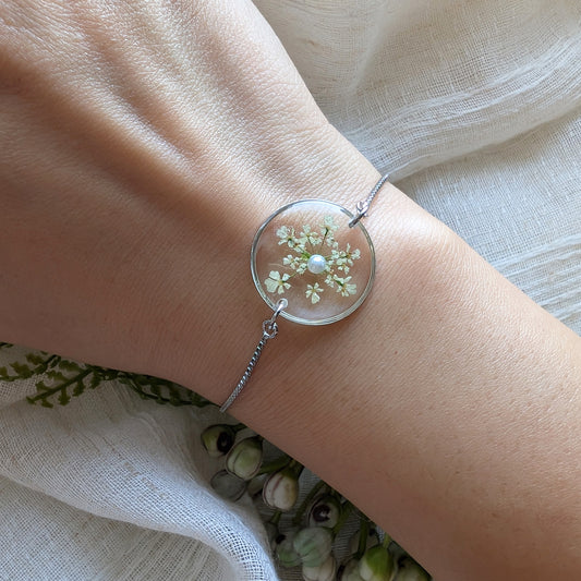 Protection Queen Anne’s Lace Bracelet | Platinum Plated Real Flower Jewellery