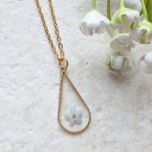 Love & Faith | Gold Plated Side Forget Me Not Teardrop Pendant Necklace