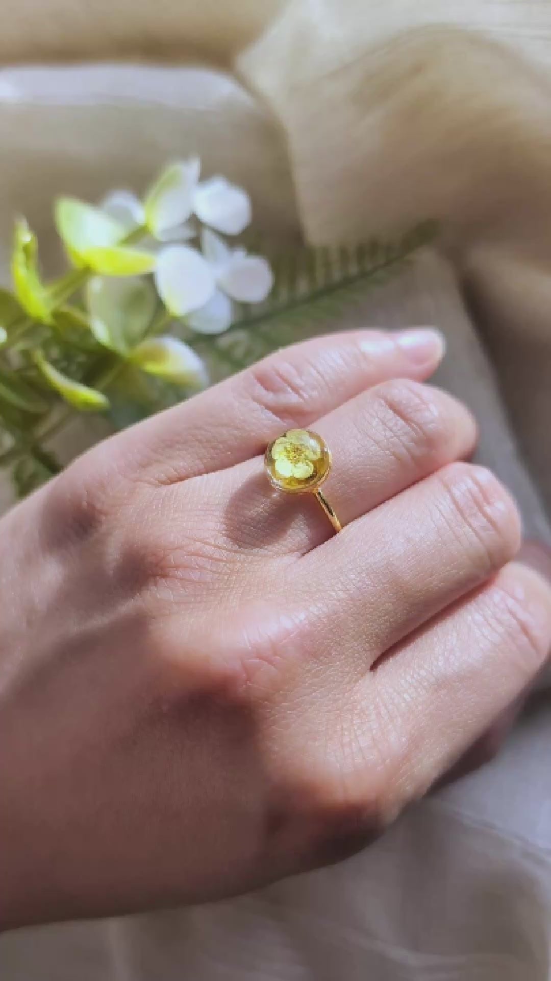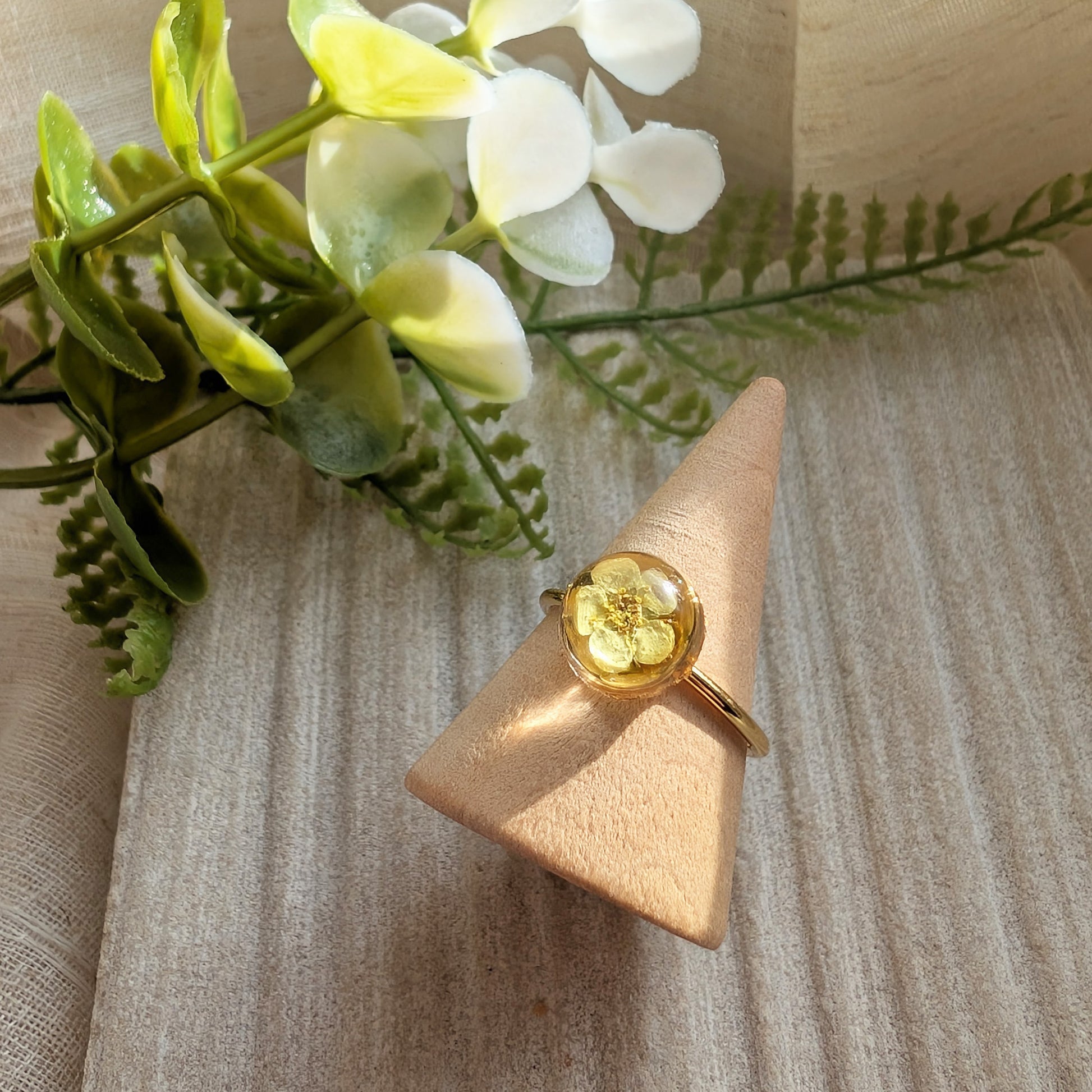 Gold Plated Yellow Spiraea Dome Ring – Real Flower Jewellery