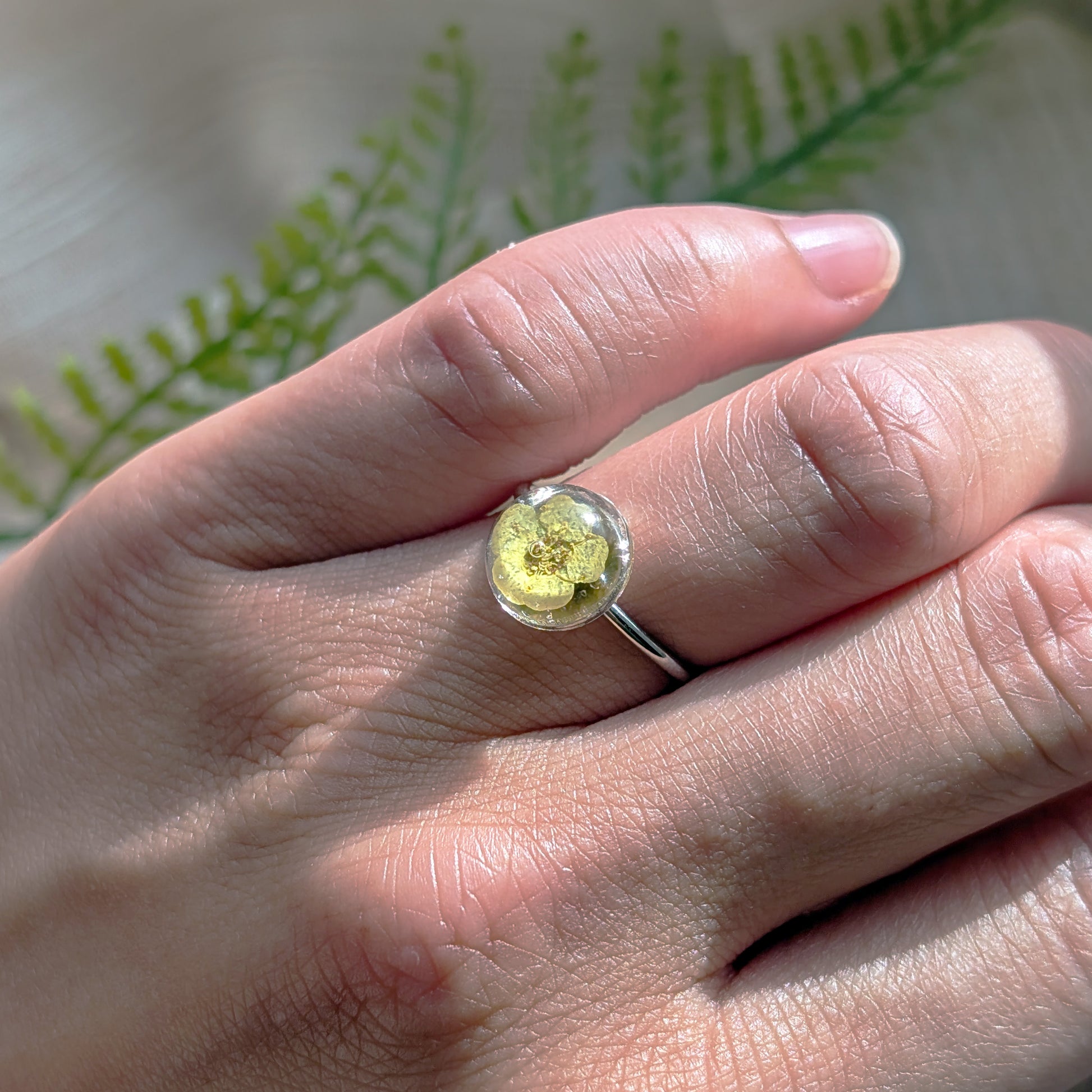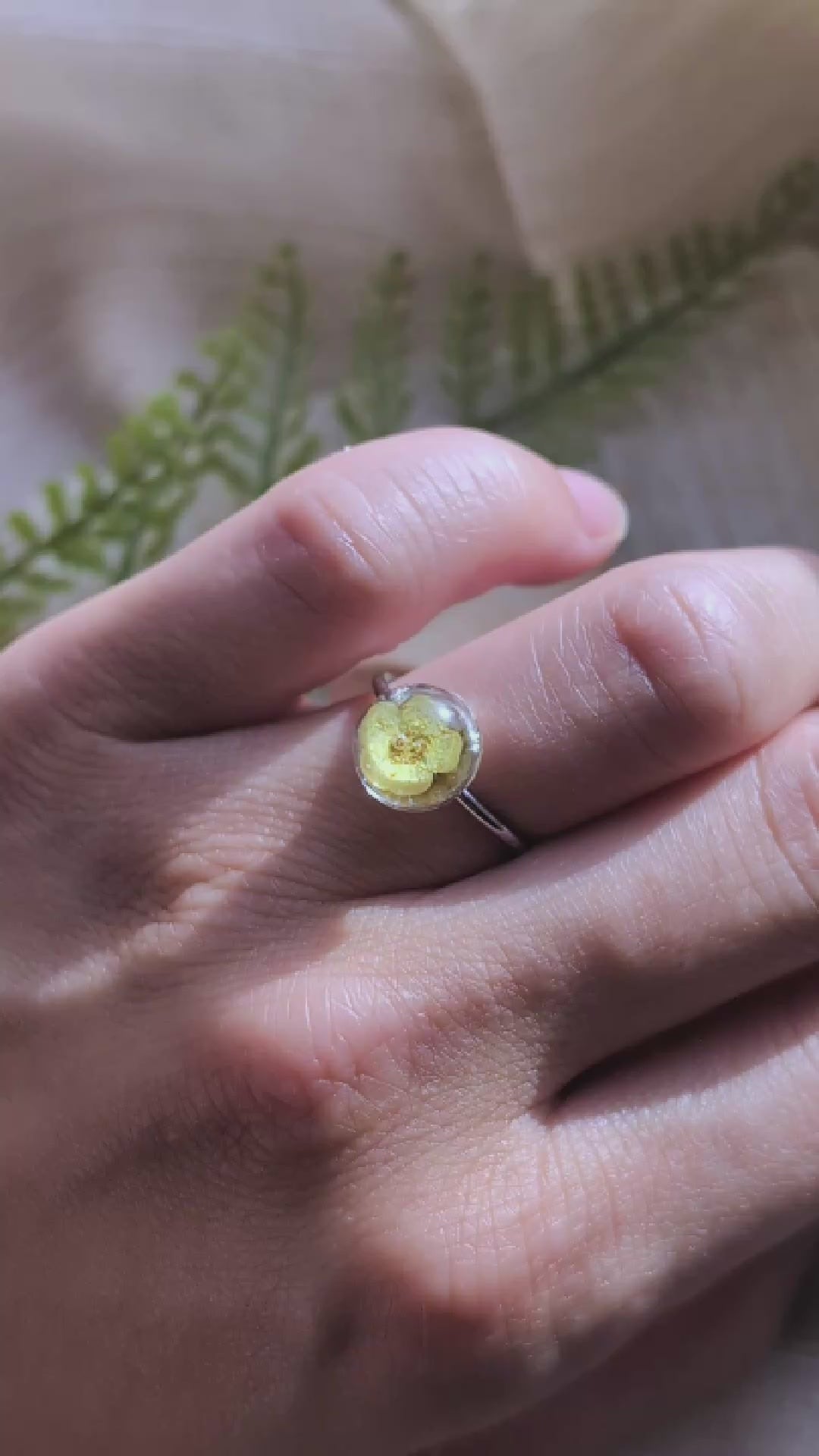 Platinum Plated Yellow Spiraea Dome Ring – Real Flower Jewellery